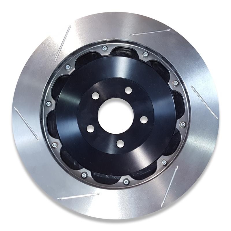 Original equipment on the 2006-09 Saleen S281 Extreme, this is a replacement front rotor set for S281E Mustangs with the 15″ Saleen Brake Kit. These rotors are a 2-piece direct replacement slotted rotor. Includes the LH & RH Slotted Aerorotor and Hat assemblies.