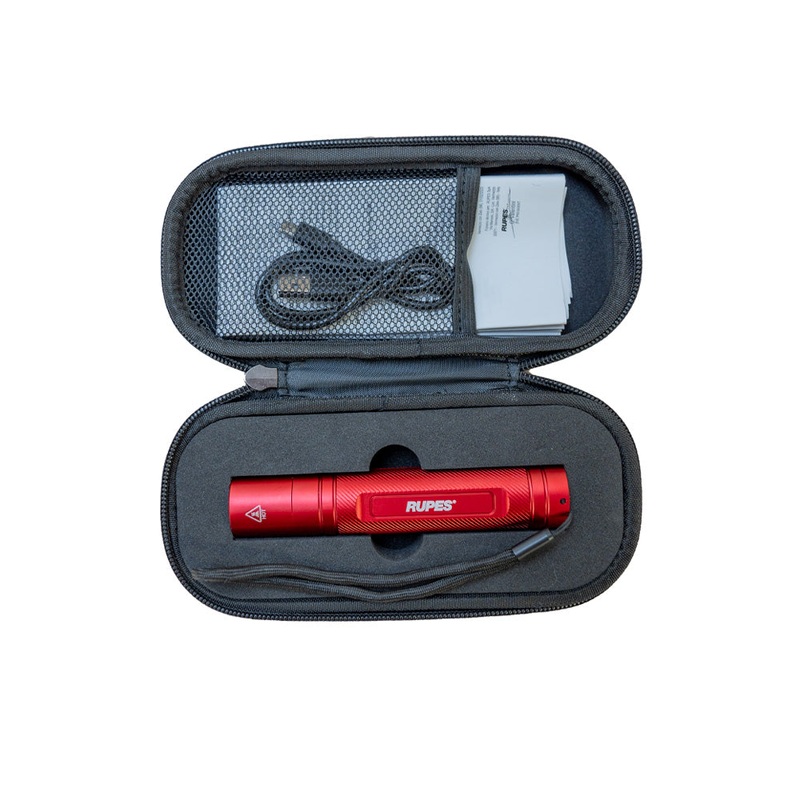 The Rupes swirl finder pen light is an ergonomic, portable light that has been specifically designed for paint inspection. Unlike a standard flash light, the light source omitted does not flood the paintwork – instead it produces a specific light spectrum & lumen that is idea for picking up imperfections and fine lines on automotive paint surfaces.