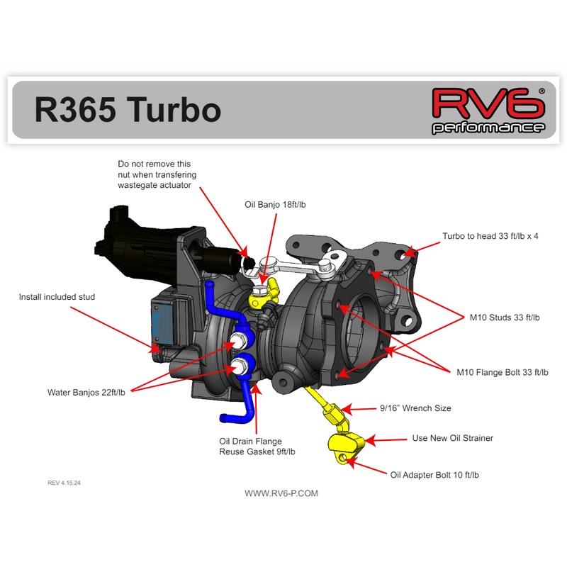 The RV6 R365 turbo has a power curve and characteristics of a ball bearing GTX2860 GEN 2 turbocharger. The test vehicle put down 345whp at 27.5psi on E30 before the factory MAP sensor and fuel system were maxed out.