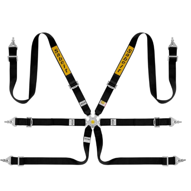 The Sabelt Steel 2 harness is a lightweight 6-point saloon harness with 2 shoulder, lap, and sub straps with pull-up adjusters. These harnesses are equipped with high strength steel adjusters and a lightweight rotary quick release buckle. The shoulder, lap, and sub belts are equipped with snap hook fixings.FIA 8853-2016 homologated.