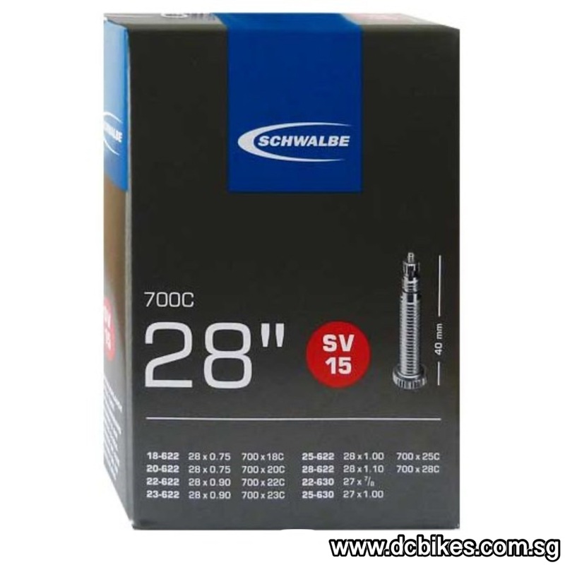 Schwalbe Tube SV15 40mm or 50mm valve length . Reliable, high quality and very air tight inner tubes from Germany’s number one manufacturer. All valves are nickel plated and valve inserts are replaceable.