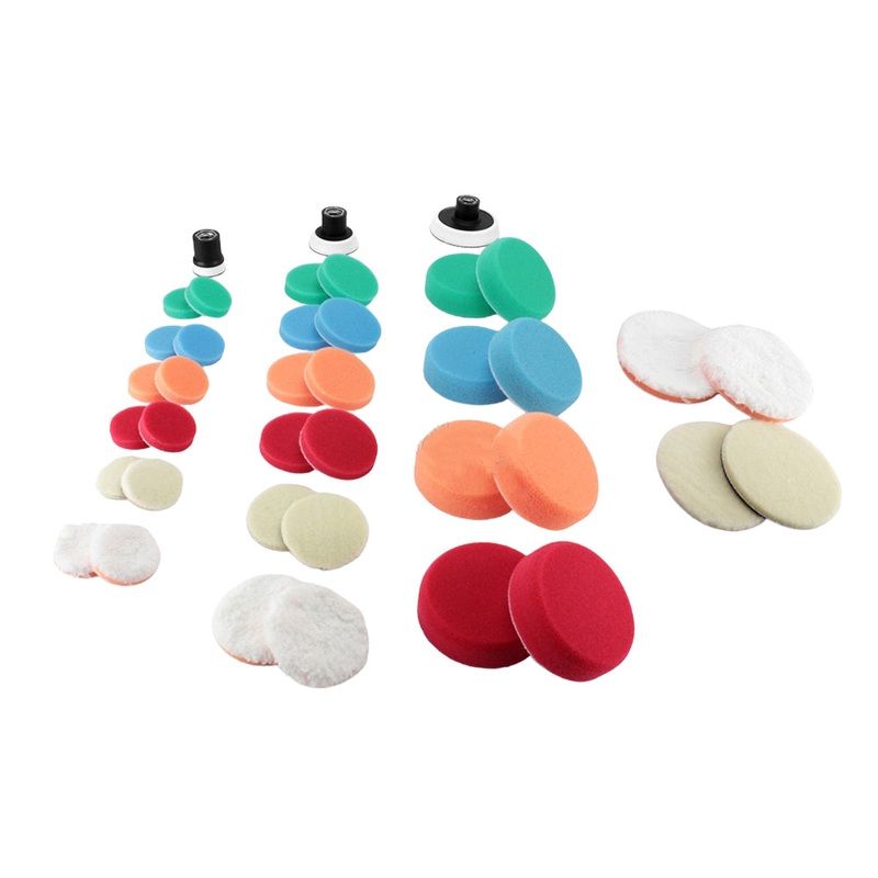 • 36x Assorted Buffing Pads: 1″, 2″, 3″ and a mixture of foam, wool and microfiber.