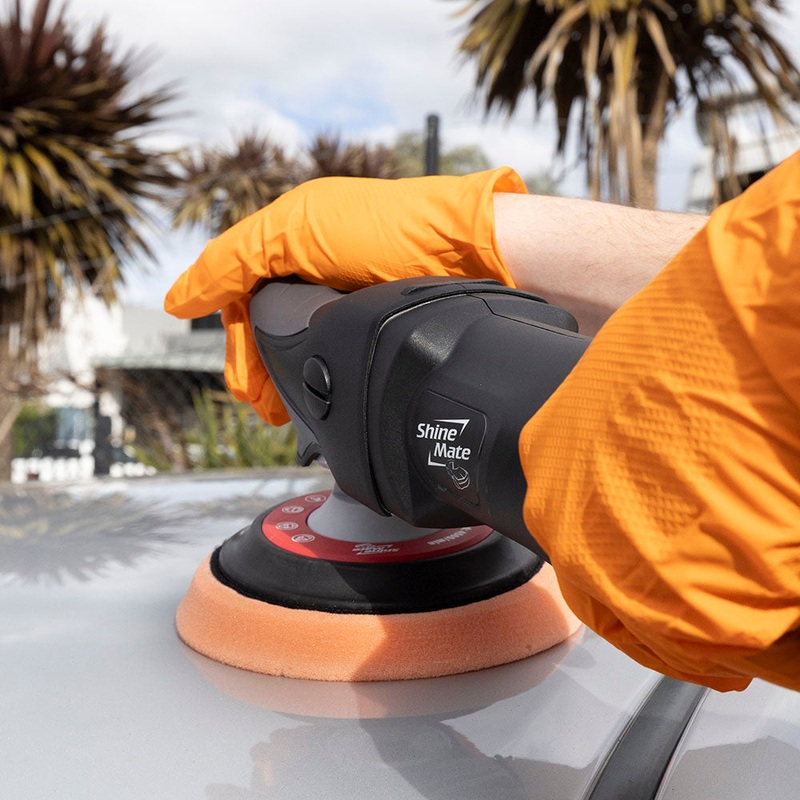 The ShineMate EB251-6 is the rotary cordless polisher for larger panels. Its 6″ backing plate covers more surface per pass than the 5″ model, so bonnets, roofs and doors move quicker without giving up the precise control and power you want from a Rotary Polisher. If you need a mobile car polisher that can handle high-volume work, this is the size to choose.