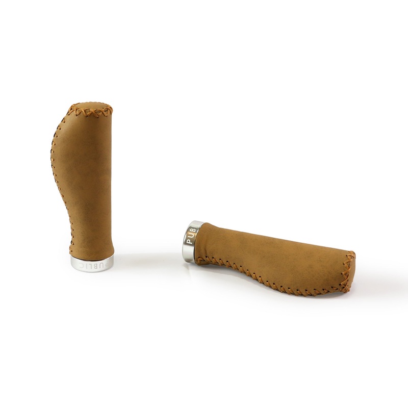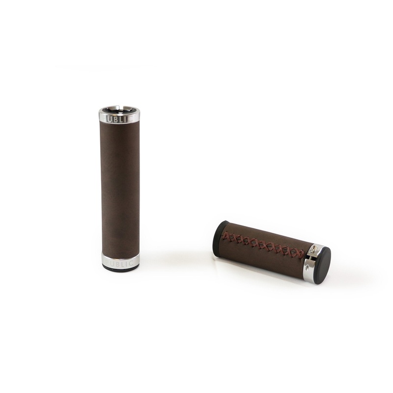Sleek in style with a hand-stitched covering and polished silver end caps featuring a laser etched PUBLIC logo, these grips include one long and one short grip to fit bikes with a twist shifter. Crafted from weather-resistant, leather-like material, these grips come in three colors, designed to match our PUBLIC saddles.