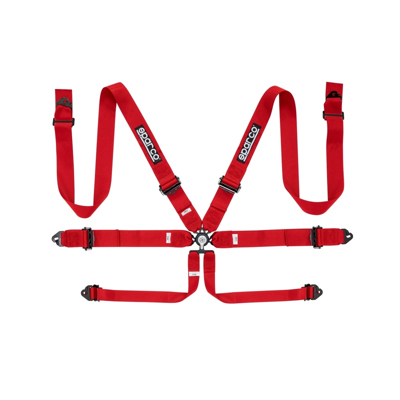 Sparcos full line of harnesses works in unity with our competition seats. Crafted from high-quality fabric and fitted with durable fasteners, each harness restrains the body for added safety and protection. Our 6-point harness features 3-inch lap and shoulder straps that attach in the center using an aircraft-quality quick-release buckle with integrated anti-submarine belts. The lightweight aluminum adjusters allow for smooth, quick adjustments and perfect clamping. Each belt attaches to the frame using snap-on fixings. Available in three colors each: black, blue and red.
