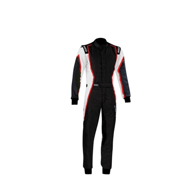 The Sparco X-Light K karting suit is an ultra-lightweight suit specifically designed for mobility and comfort. It features unique ergonomic impact-absorbing padding on the inside knee. This strategic padding was requested by pro drivers to help with stabilization during intense lapping. The X-Light K features specially designed air intakes on the inner arms, inner thighs and lower legs that help cool the driver while driving. The X-Light K has pre-curved arms and full floating arm sleeves and a large rear stretch panel for comfort in the driving position. The X-Light K has a hybrid construction with fully printed inserts. The X-Light K is available in 4 colors in sizes from 44 to 62. Also available in youth sizes 120-150. CIK/FIA N2013.1 approved.