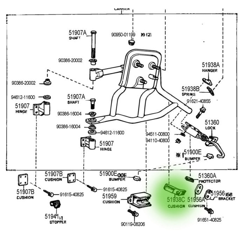 Spare Tire Carrier Cushion for your later model Land Cruiser. Fits FJ40, BJ, HJ, and Troopy – 8/1976 – 10/1984.