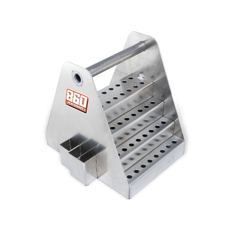 Introducing the 860 Performance Spark Plug Caddy, your ultimate solution for spark plug organization and transport. With a capacity of up to 64 spark plugs and compatibility with diameters ranging from .42 to .475, it’s versatile and practical. Crafted from durable .090 aluminum and featuring a convenient carrying handle, it ensures easy transportation. Dedicated side pockets accommodate essential tools like the Nitrous Outlet Compact and Precision Spark Plug Reading Tools, the 860 Performance Spark Plug Gap Tool, and a 32 Blade Feeler Gauge. Seamlessly integrating with the Universal Intake Mount Tool Tray enhances efficiency and organization. Choose from options with or without a textured black powder coat finish for added style.