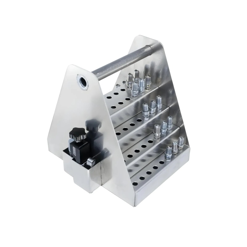 Introducing the 860 Performance Spark Plug Caddy Tuners Kit, a comprehensive solution for spark plug maintenance. With a capacity for up to 64 spark plugs and compatibility with diameters ranging from .42 to .475, it’s versatile. This kit includes Compact and Precision Spark Plug Reading Tools, a Spark Plug Gap Tool, and a 32 Blade Feeler Gauge, along with a Loctite Anti Seize Stick for added convenience. Crafted from durable .090 aluminum with a convenient carrying handle, it ensures easy transportation. Seamlessly integrating with the Universal Intake Mount Tool Tray, it enhances organization and efficiency. Choose from options with or without a textured black powder coat finish for added durability and aesthetic appeal.