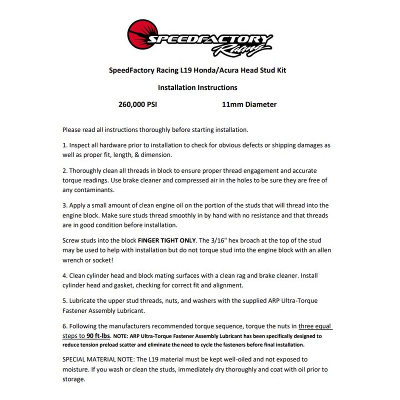 1994-2001 Acura Integra, 2002-2006 Acura RSX, and 2006-2015 Honda Civic Si Extreme Duty L19 Head Stud Kit by SpeedFactory