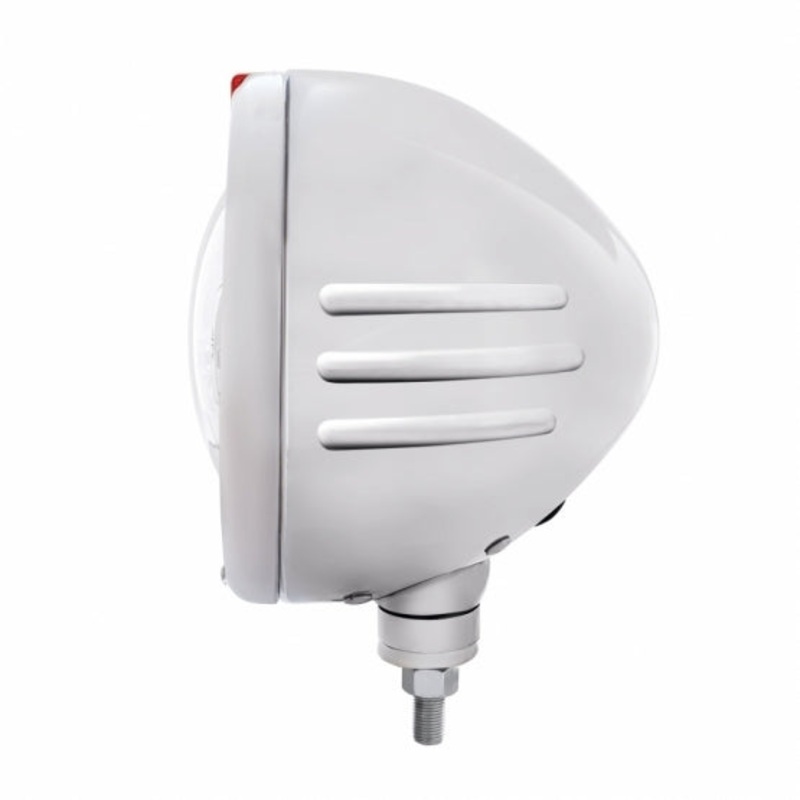 *Highly polished 304 stainless steel headlight housing with embossed stripes on the side.