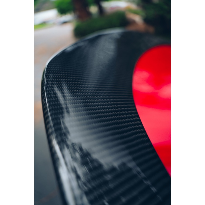 This is StreetHunter Designs Carbon Fiber Rear lip spoiler for the A90 Supra. The High Kick lip spoiler is the perfect blend of OEM and aggressive styling. This lip stands taller than most and still retains the curves of the trunk lid. StreetHunter Designs Carbon Fiber is sprayed with Automotive UV Clear coat for a lasting appearance.
