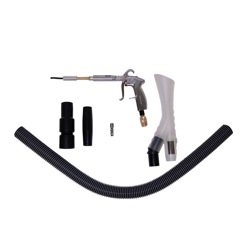 The unique shape and technology of the cone also adds additional suction power to your vacuum. The TORNADOR VELOCITY-VAC DRY easily attaches to an air source and a wet/dry vacuum. This new technology combination will streamline your automotive detailing and reconditioning challenges. Its ideal for use in quick Wash and Vac detailing situations in Car Washes, Body Shops, New Car Get-Ready, and other quick detailing jobs such as Car Upholstery & Carpet cleaning. The VELOCITY-VAC DRY is a quick and economical solution to combat everyday interior problems.