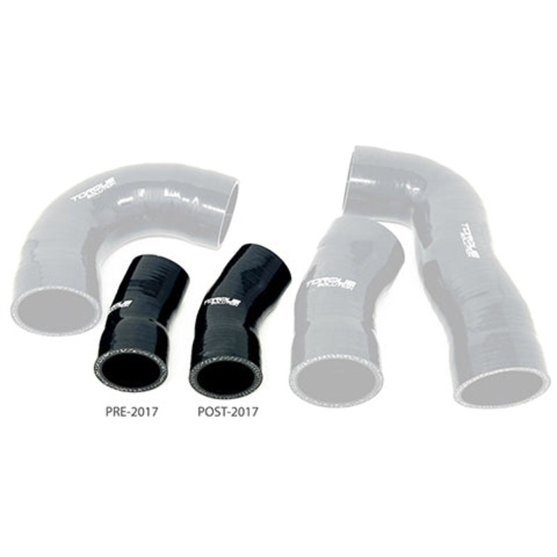 To provide a wider range of fitment the kit comes with 2 different turbo outlet hoses to fit both pre and post-2017 MQB models. The short hose fits pre-2017 and the longer fits post-2017 models.