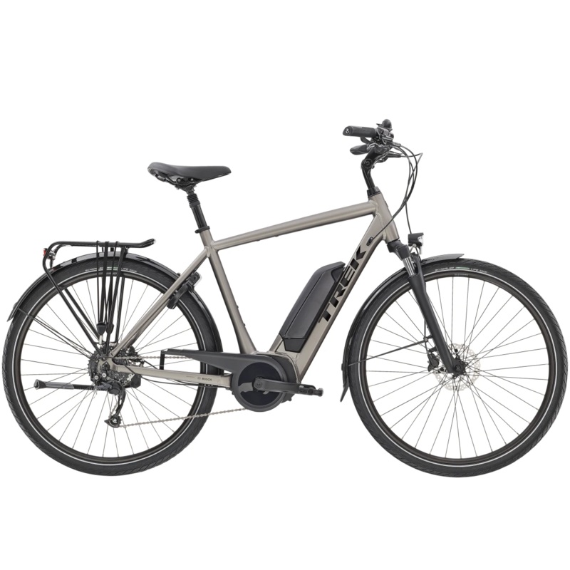 A lightweight Alpha Gold aluminium frame, Bosch Performance Line Cruise (250 W, 65 Nm) motor capable of sustaining speeds up to 25 km/h, a Bosch Intuvia controller and your choice of a 300 Wh, 400 Wh or 500 Wh battery. Plus, a 9-speed Shimano drivetrain, a road-smoothing suspension fork and seatpost, hydraulic disc brakes, wide 45c puncture-resistant tyres for extra stability, ergonomic grips, a kickstand, front and rear lights, a lock and a MIK rear rack and mudguards.