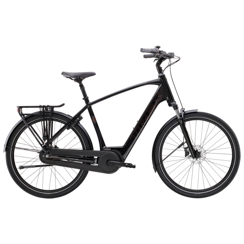 A lightweight high-performance hydroformed aluminium frame with lowstep geometry, a Bosch Performance Line drive unit (250 Wh, 75 Nm) capable of sustaining speeds up to 25 km/h, your choice of 400, 545, 725 or 800 Wh Bosch Powerpack battery, smart system integration for use with the e-Bike Flow app and a Bosch Purion 200 controller. Plus, a 9-speed Shimano CUES drivetrain, hydraulic disc brakes for all-weather stopping power, a suspension seat post, wide puncture-resistant tyres for extra stability, ergonomic grips, a kickstand, lights, a MIK rack and mudguards.