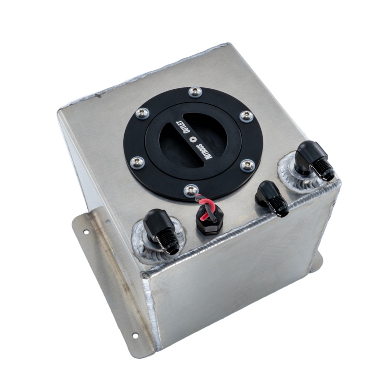 Heavy Duty Construction. Nitrous Outlet’s dedicated fuel systems come complete with a custom built hand welded 2.07 gallon fuel cell, mounting brackets, E85 compatible in tank fuel pump, Aeromotive fuel regulator, Aeroquip 6 An hose, fuel lines, and fittings.
