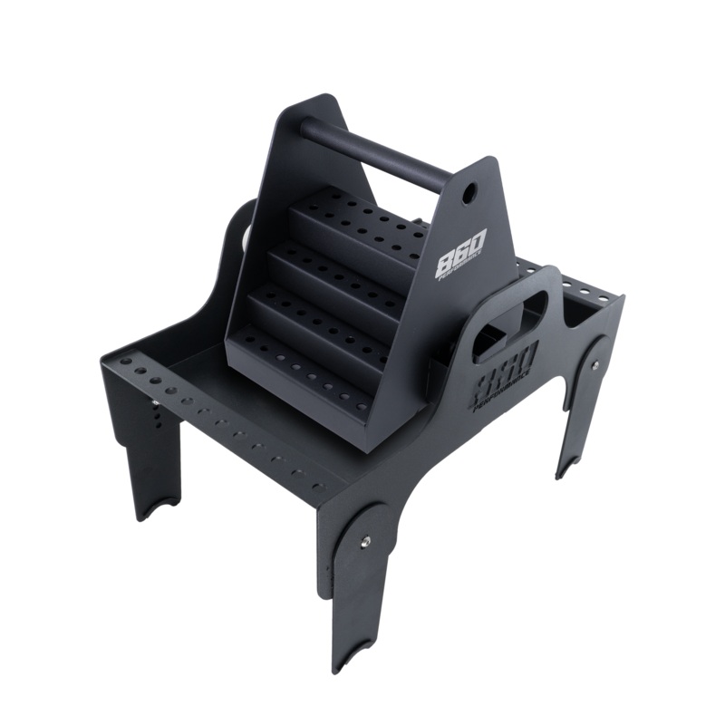 Experience unparalleled versatility and durability with our Universal Intake Mount Tool Tray. Crafted from .125″ thick aluminum, this tray seamlessly mounts onto fuel rails, carburetors, or throttle bodies, offering adjustable extension legs for precise intake clearance. Suitable for fuel rail lengths of 13.5 or longer, it comes complete with mounting rings for both 4150 and 4500 carburetors/throttle bodies, plus rubber plugs for hole filling. Boasting ample tool placement space and accommodating up to 12 spark plugs per side, it’s essential for enthusiasts. Elevate your setup with the optional matte texture black powder coat finish for a sleek, professional touch.