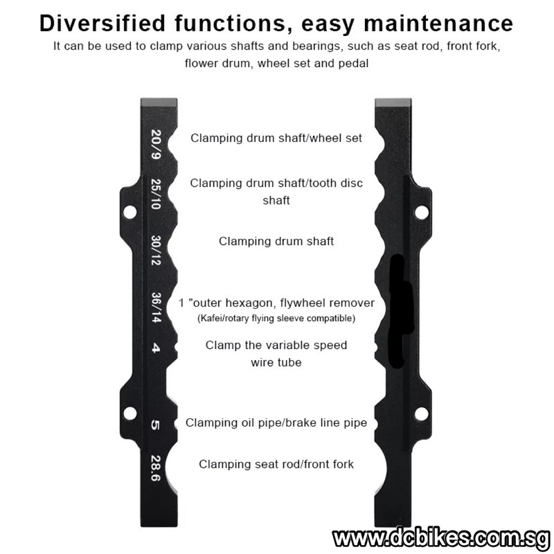 Can be used to clamp all kinds of axles and bearings, such as seatposts, front forks, hubs, wheels, pedals, oil pipes, flywheel removers, chainrings, etc.