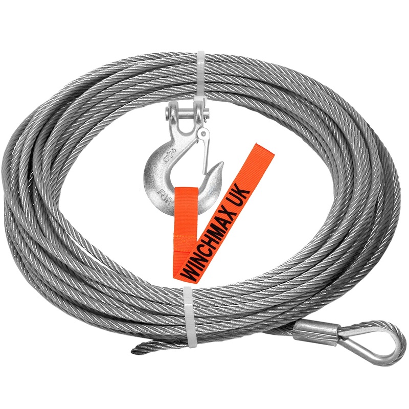 Steel Rope 15m x 6mm. Hole fix. 1/4 Inch hook. For winches up to 4,000lb.