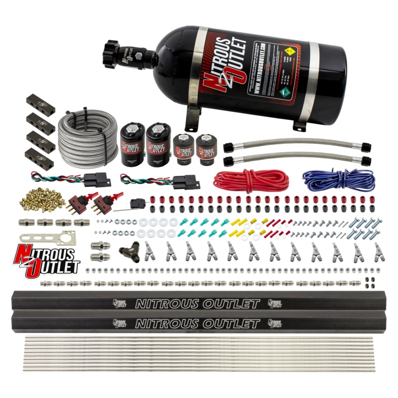 6 Cylinder 4 Solenoid Dual Stage Direct Port System With Distribution Blocks and Straight Blow Through Nozzles, High Fuel Pressure E85