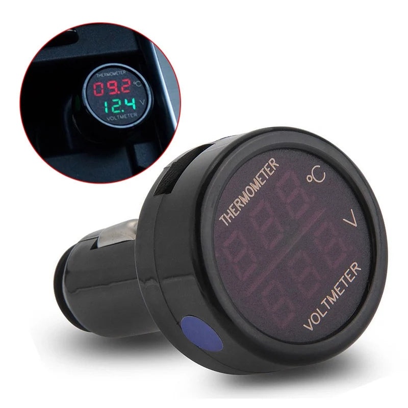 Cigarette Socket Digital Voltmeter + Thermometer Meter Gauge